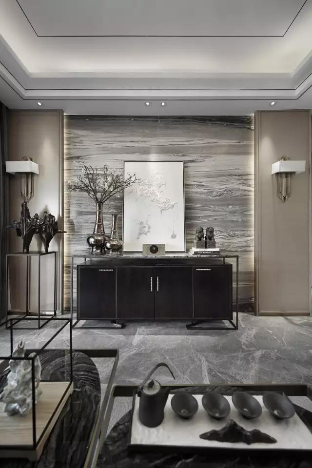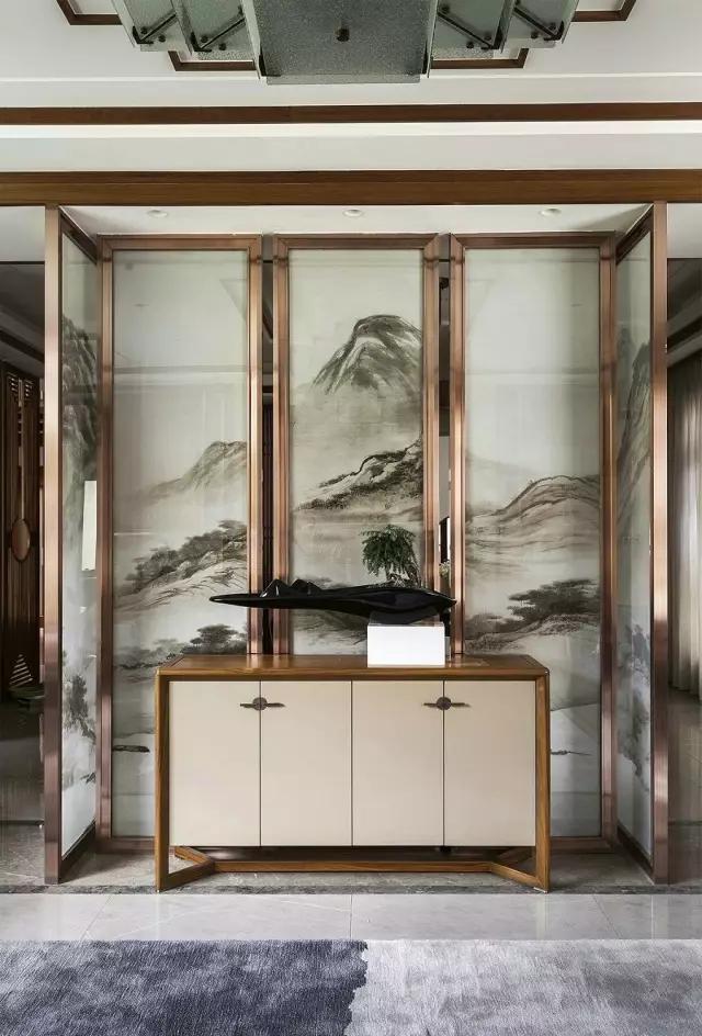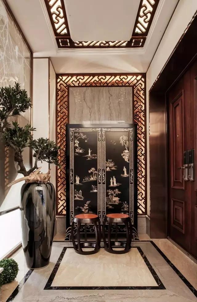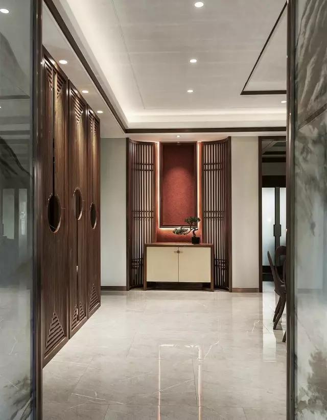 與傳統(tǒng)中式玄關(guān)不同的是,現(xiàn)代背景演繹下的新中式不再鐘情于繁瑣與沉悶,而是將傳統(tǒng)元素和現(xiàn)代元素相互融合,相得益彰,實(shí)木材質(zhì)和現(xiàn)代設(shè)計(jì)的碰撞,勾畫(huà)出打破傳統(tǒng)卻又不顯突兀的美感!