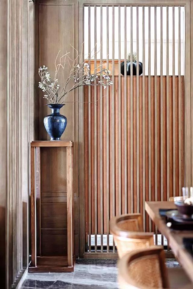 自古以來(lái),中國(guó)人講究含蓄內(nèi)斂,格外注重門戶隱私,因而人們?cè)诩彝パb修過(guò)程中習(xí)慣于通過(guò)玄關(guān)的設(shè)計(jì),對(duì)戶外的視線產(chǎn)生一定的視覺(jué)屏障。實(shí)木打造的關(guān),禪意更濃。
