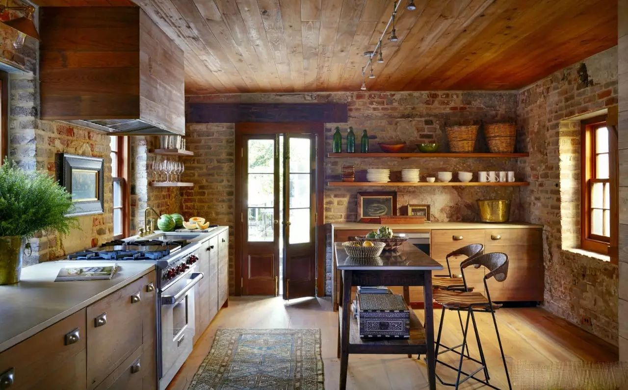 實(shí)木和磚塊的組合,像是會(huì)出現(xiàn)在童話森林里的廚房小屋。