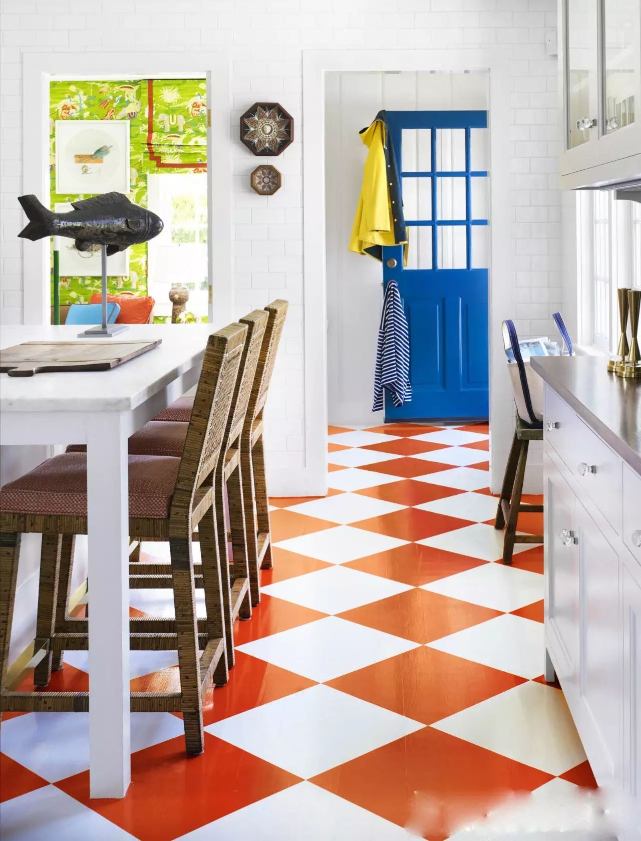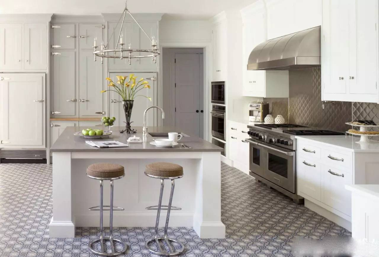?白色的廚房搭配紅藍(lán)的地磚,一下子鮮活起來,所以說顏色搭配是非常重要噠~