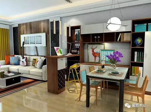 隔斷設(shè)計(jì)成酒柜,外加一個(gè)小吧臺(tái),既起到空間劃分的作用,又是酒柜+吧臺(tái)。周末閑暇時(shí)坐在上面品味美酒,是不是有種置身酒吧的感覺!