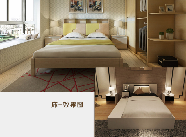 臥室的功能布局應有睡眠、貯藏、梳妝以及閱讀等部分。平面布局應以床為中心。睡眠區(qū)的位置應相對比較安靜。