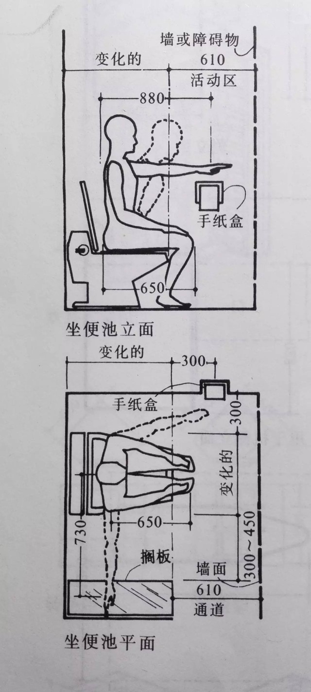 浴缸以及便池附近應設置尺度適宜的扶手,以方便老弱病人的使用。