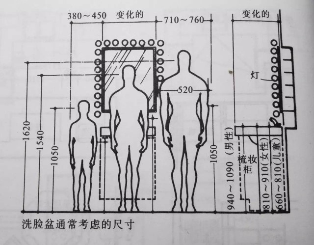 洗漱臺壁燈高度或與視線平行:150-180cm比較合適。
