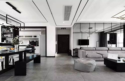 空間開敞而靈動,采用黑白灰色為基調,