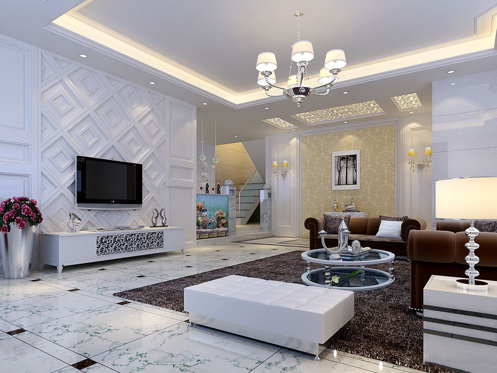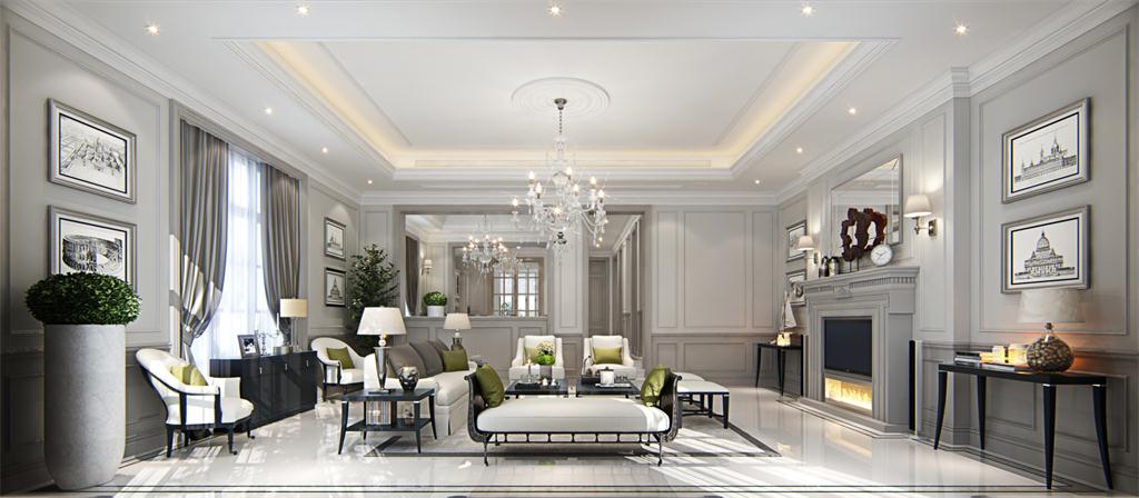 簡(jiǎn)歐別墅客廳電視背景墻效果圖