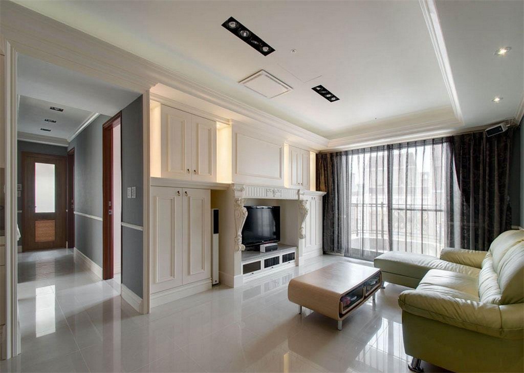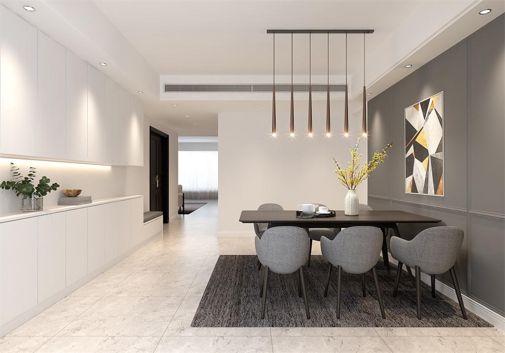 與沙發(fā)色調(diào)一致的窗簾,餐具柜、桌子、