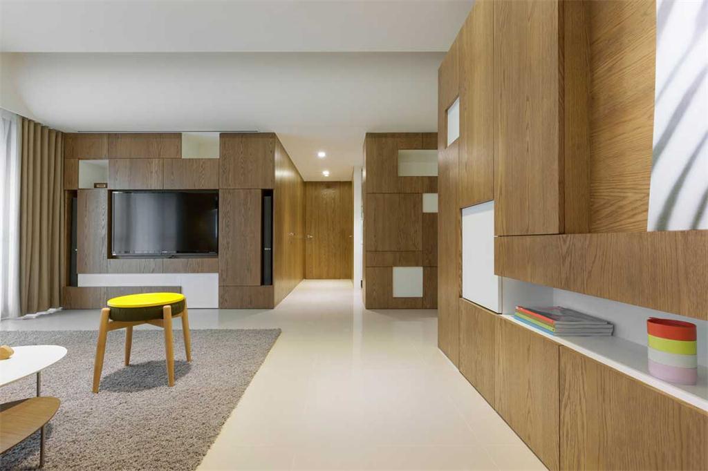 而是巧妙的應(yīng)用了一系列木飾面材質(zhì),