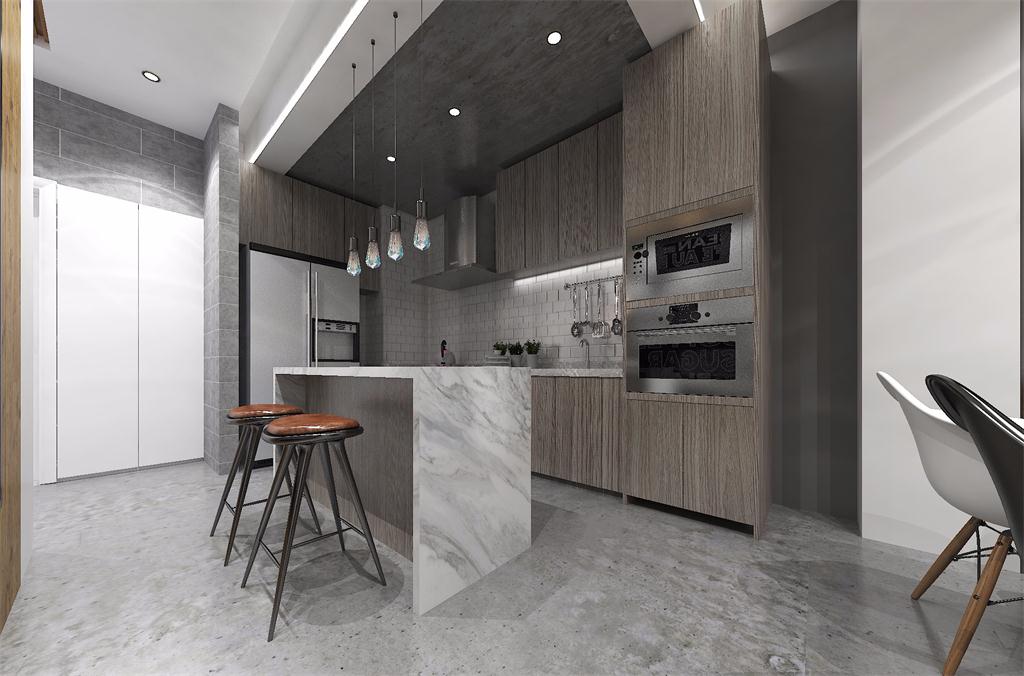 空間引用沉穩(wěn)冷靜的現(xiàn)代工業(yè)風(fēng),