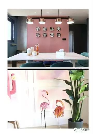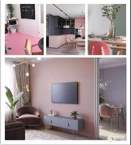 獵人綠可以說是最深的綠色,即墨綠色,臟粉色的飽和度又很低,墨綠色搭配臟粉色它們是冷暖沖突對(duì)比,這樣一來會(huì)讓你的家顯得非常有格調(diào)。