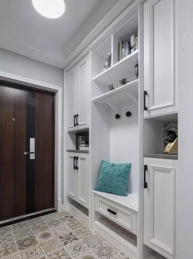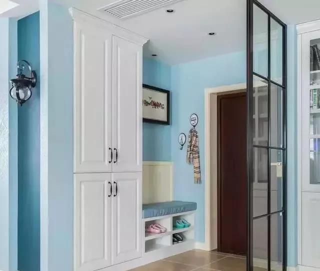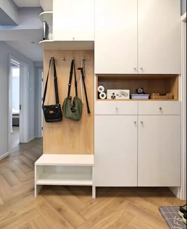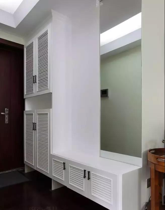 3、鞋柜一般都是裝在進(jìn)門處,需要使用方便,又不影響美觀,內(nèi)嵌式鞋柜與墻面保持一致,充分利用空間。
