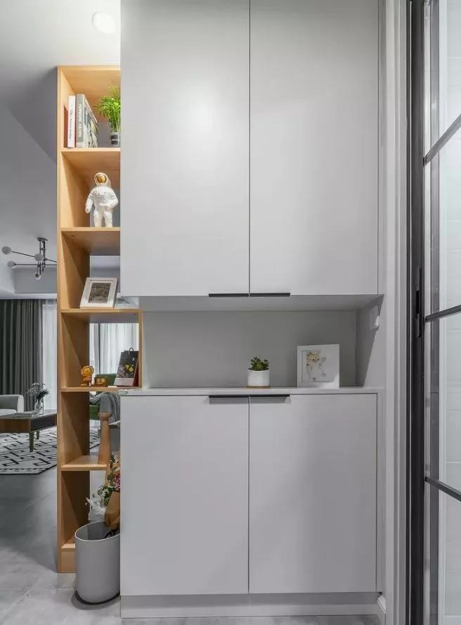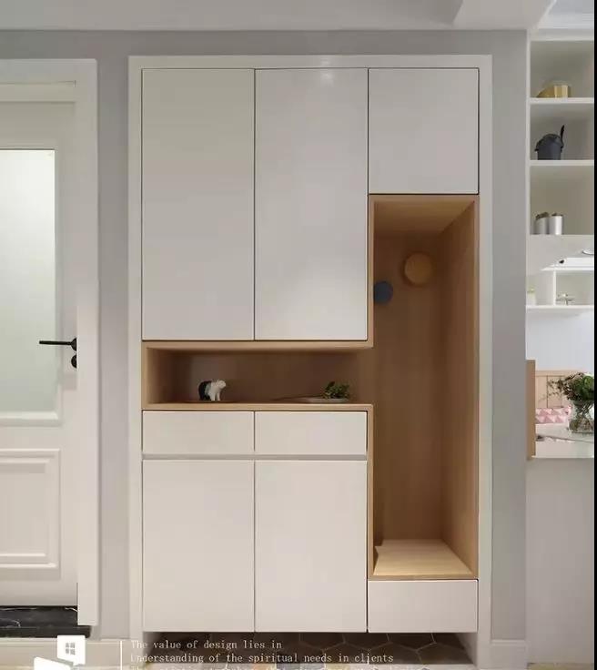 5、鞋柜底部要留空,高度留個(gè)15-20厘米,從外面回來,直接就能方便的把鞋子放進(jìn)去,不用堆在門口那么難看。