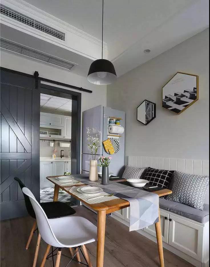 原木,材質(zhì)原始質(zhì)樸,天生自帶溫馨淡雅之風(fēng)。與高級(jí)灰結(jié)合起來(lái)同樣顯得溫馨舒適。